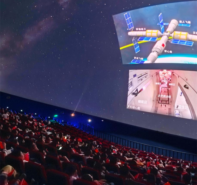 四大特效影院与三大主题放映厅组成的光影矩阵在双节期间拉开帷幕。176场影片轮番点亮银幕,15775位观众在这里开启奇妙旅程。观影内容涵盖太空探索、极地生态、海洋生物等多学科主题,构建起立体丰富的科学知识图谱。而最动人的篇章,当属免费放映的国庆主题影片:《志愿军:存亡之战》保家卫国的赤诚,《万里归途》跨越山海的守护,《里斯本丸沉没》沉潜历史的厚重,用光影为笔,将家国情怀写进观众心里,让爱国热忱在观影中自然升温。
