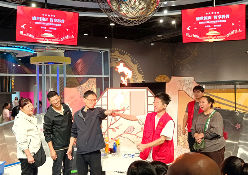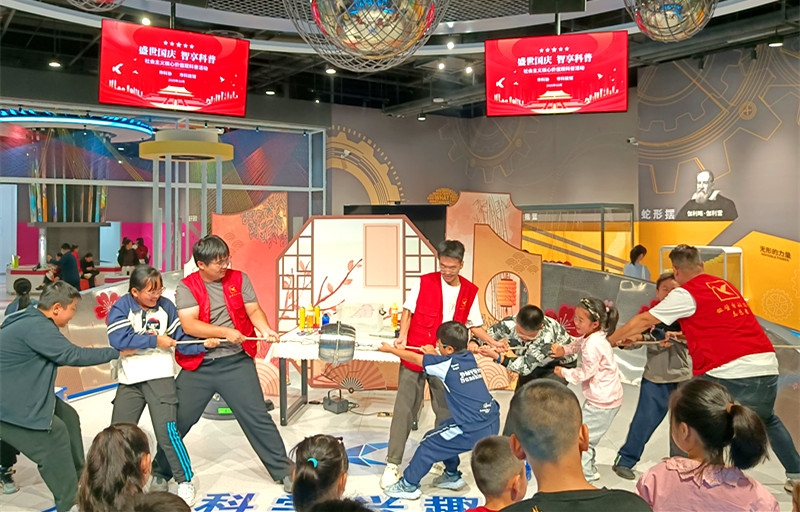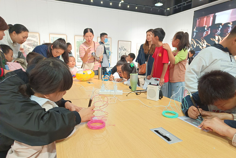 小朋友们跟着科普辅导员学习绘制漆扇,绘京剧脸谱、做花草纸灯;那边,“小小发明家”们忙着用3D打印机制作专属红旗,看着自己设计的图案从数字模型变成实物,成就感直接爆棚。市集旁的 “趣味大挑战” 专区更是笑声不断。“原地踏步走” 考验平衡感,有的小朋友刚蒙上眼就忍不住往旁跑偏,小脚步歪歪扭扭逗得围观者捧腹;投壶、三角棋等传统闯关游戏前更是排起长队,全家老小组队PK,笑声与喝彩声此起彼伏,有人感叹:“原来传统文化和科技脑洞能这么搭。”