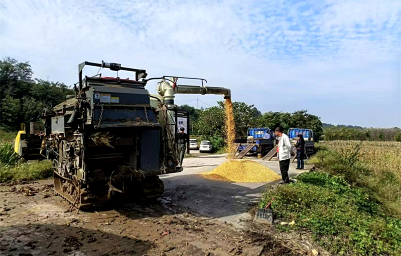 多方协调,打通丰收之路。面对雨后土地湿软、农机不足的难题,该镇一方面精准调度本地8台收割机投入作业,另一方面跨区域协调6台联合收割机紧急支援。“这些‘铁牛’真是雪中送炭!”杨家村负责人指着正在作业的农机说,“多一台农机,就多一份保障,老百姓的收成就多一分安全。”截至目前,支援农机已帮助收割玉米1万余亩,有效加快了收获进度。