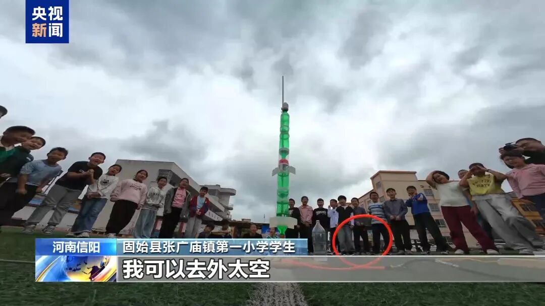 在张广庙镇第一小学“雏鹰科技馆”,水火箭是当之无愧的“镇馆之宝”,从第一代用一个饮料瓶做的小不点,到最新一代超过两米的大块头,水火箭在变大,孩子们的梦想也在启航。