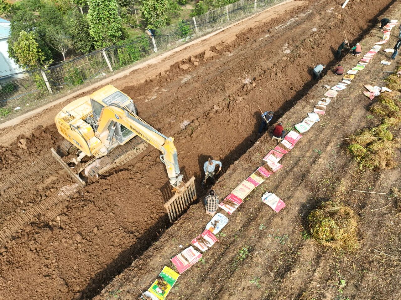 在沁阳市王曲乡东王占村王国栋的山药地里,挖掘机不断挖开土层,露出一根根粗壮的铁棍山药,工人们利落地将山药从泥土中刨出,捡拾、清理、打包、装车,田间一派繁忙的收获景象。王国栋是沁阳本地的山药供应商之一,他种植山药已有20余年,他深知霜降前后的山药,淀粉会转化为糖分,使得口感更加甜美、药性更强。