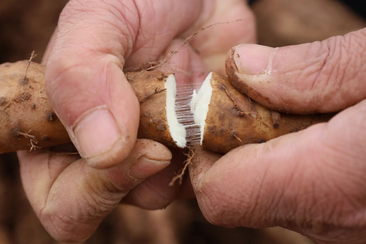 折断后的山药洁白细腻 黏液丰富 韩田 摄
