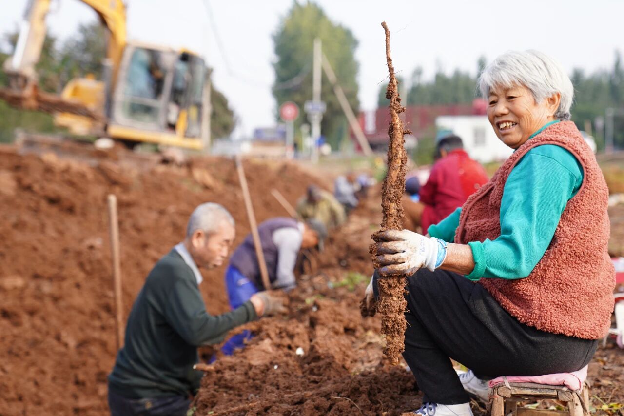 “霜降前后,正是山药的采收时节,我们利用这几天的晴好天气,抓紧把260亩地进行采收。今年山药产量还可以,一亩地在3600斤左右。”沁阳市国栋山药种植合作社王国栋说。沁阳,古称怀庆府,这里出土的山药被称为“怀山药”。由于沁阳气候温和,土质疏松肥沃,土壤中微量元素含量丰富,生长在这里的山药具有色白、粉足、质腻、黏性强等特点,易积累养分,产出的山药口感好、品质佳。