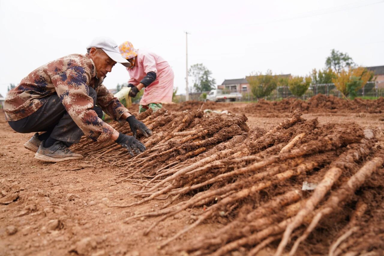“我挖山药快30年了,挖得很顺手,一天能挣个一百多块钱。”工人杨幸自豪地说。沁阳作为怀山药的主产区,山药种类繁多,除了传统的铁棍山药,还培育出怀山药的优化品种怀铁耙齿山药,它的口感更加软面,营养价值更高。