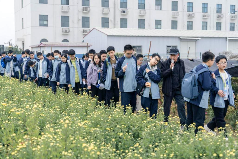 中药材试验地里,同学们认识了芍药、金银花、酸枣等多种中草药。盛开的金色菊花格外引人注目,让大家感受到中草药不仅是药材,更是充满生命力的大自然瑰宝。