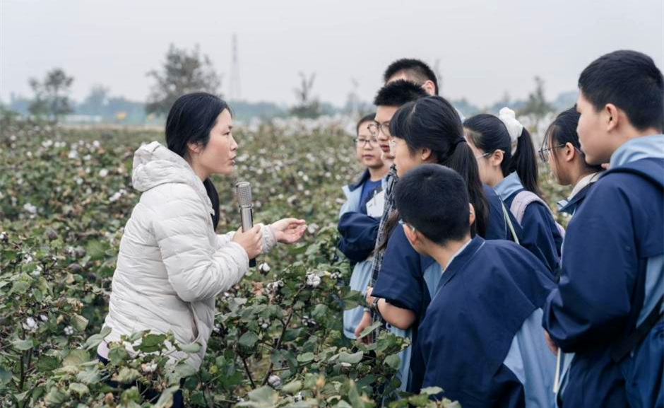 在棉花试验田,同学们开启了一段从“花”到“絮”的探索之旅。在专家讲解棉花从开花到结铃、吐絮的过程中,许多同学第一次亲眼见到了植株上的棉花,也亲手采摘了棉絮,触摸了那份柔软与温暖,真切地体会到“棉”的由来,感受到农业科技工作者和劳动者的智慧与辛劳。