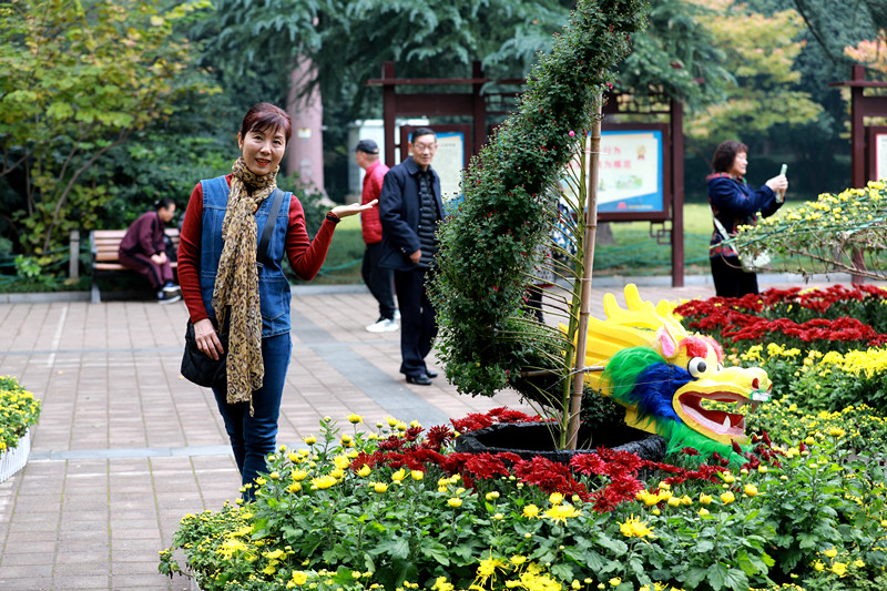 记者在现场看到,菊花展在公园东门内广场、秋园广场、中心广场和西门内广场都设置了大型主题花坛和菊艺造型,美不胜收。