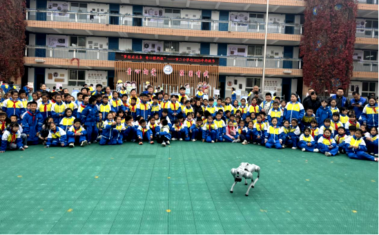 紧接着,会“跳舞”的机器狗闪亮登场——通体银白的机身泛着科技光泽,随着工作人员手中遥控器的指令,它先是欢快地摇了摇“脑袋”,随即灵活跃起,稳稳落地时还俏皮地转了个圈,引得前排孩子忍不住伸手互动。