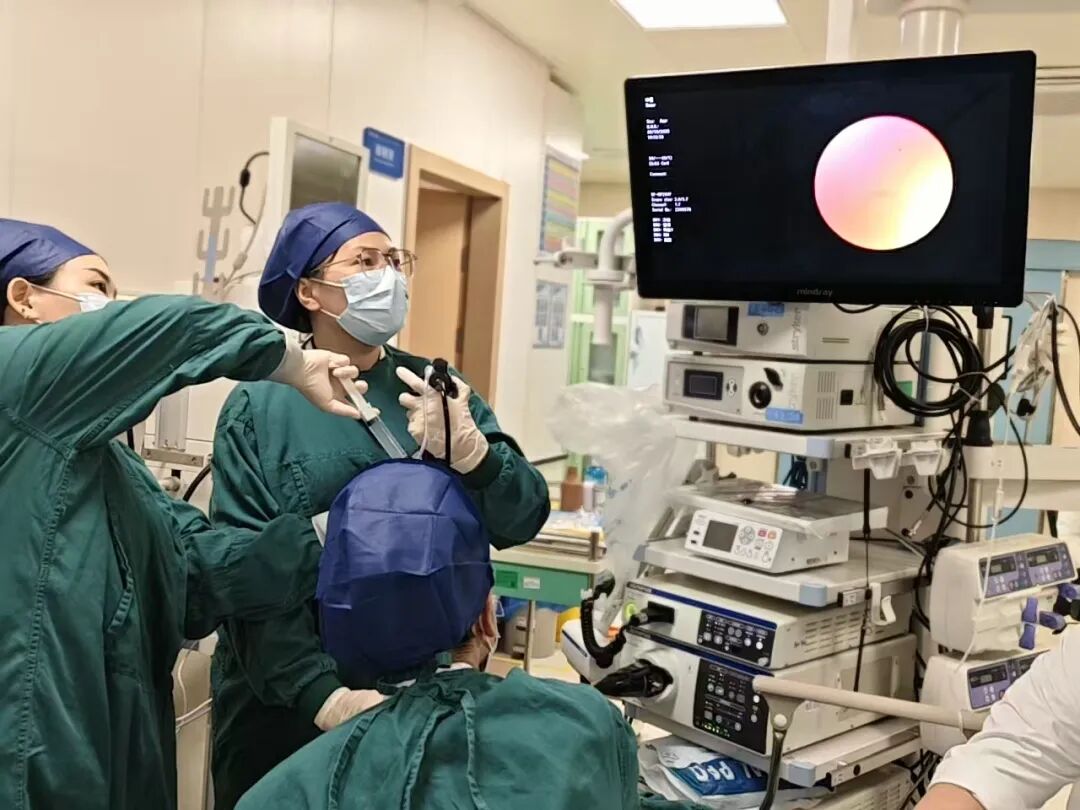 手术中,支气管镜刚进入气道就发现,笑笑的气道黏膜充血水肿,大量黄白色黏痰不断涌出,左主支气管及各肺段开口已被黏液栓完全堵死。医护团队争分夺秒,用负压吸引、灌洗、钳取等方式清理堵塞物,经过反复操作,终于打通了被堵塞的呼吸通道。
