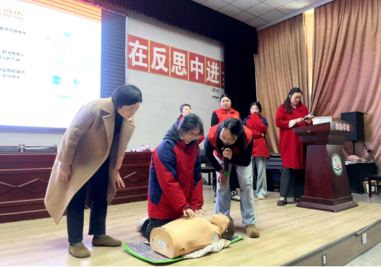 为了让老师和学生们更好地掌握技能,医务人员还与老师、学生现场互动,手把手纠正动作偏差,确保大家能够准确掌握操作要点。学生们热情高涨,积极参与实践,在亲身体验中提升了急救实操能力。