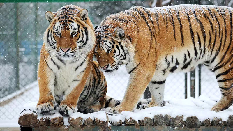 看到这里,粉丝朋友们是不是放心了,咱毛孩子们的冬天是舒服又暖和。虽然馆舍内暖意融融,但也有耐不住寂寞的,比如自带羽绒服的鸭鸭家族,依旧在天鹅湖里肆意游弋;身穿皮大衣的大老虎们,一如既往的在领地里来回巡视,虽然偶尔脚底会打个滑;天性活泼的猕猴,哪怕是冷得伸不出手,也得在雪地里追逐打闹;人见人爱的小熊猫,也是必须在雪地里撒欢嬉戏……