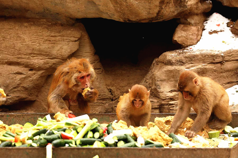 更贴心的是,咱工作人员还在长颈鹿、大象、猕猴等动物的饲料中增加了葱、姜、蒜等,从饮食上帮助它们预防感冒,“食疗防寒”小妙招必不可少。