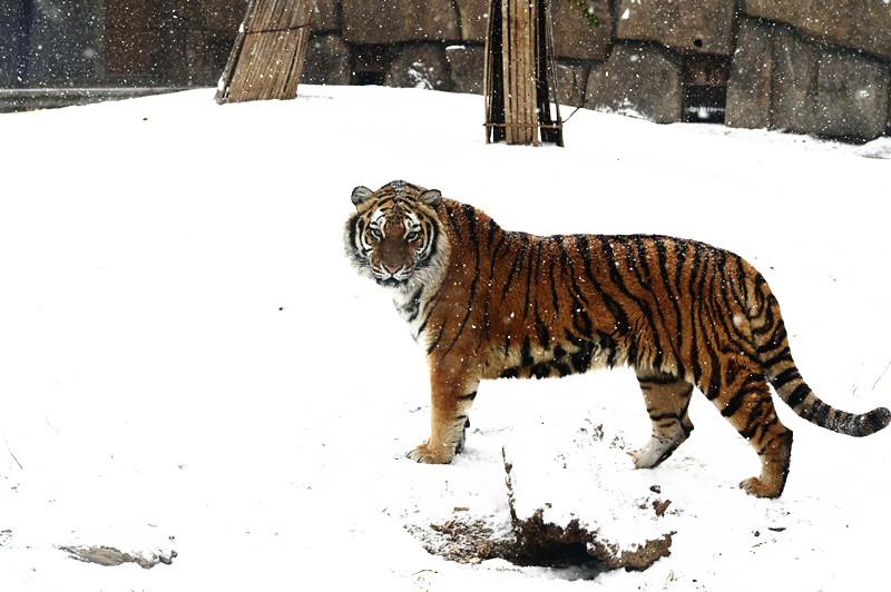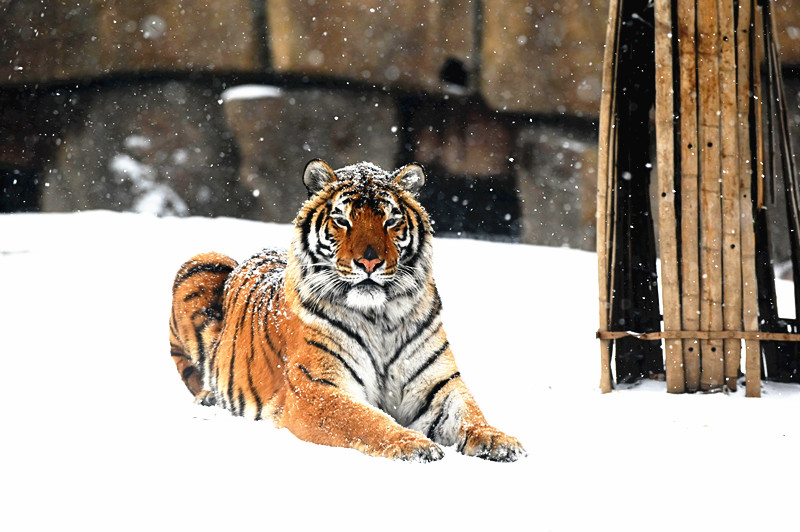1月19日,河南省沁阳市迎来2026年第一场降雪,在沁阳市和生森林动物乐园大型猫科动物散养区里的东北虎,在雪地上嬉雪耍萌,情趣盎然。