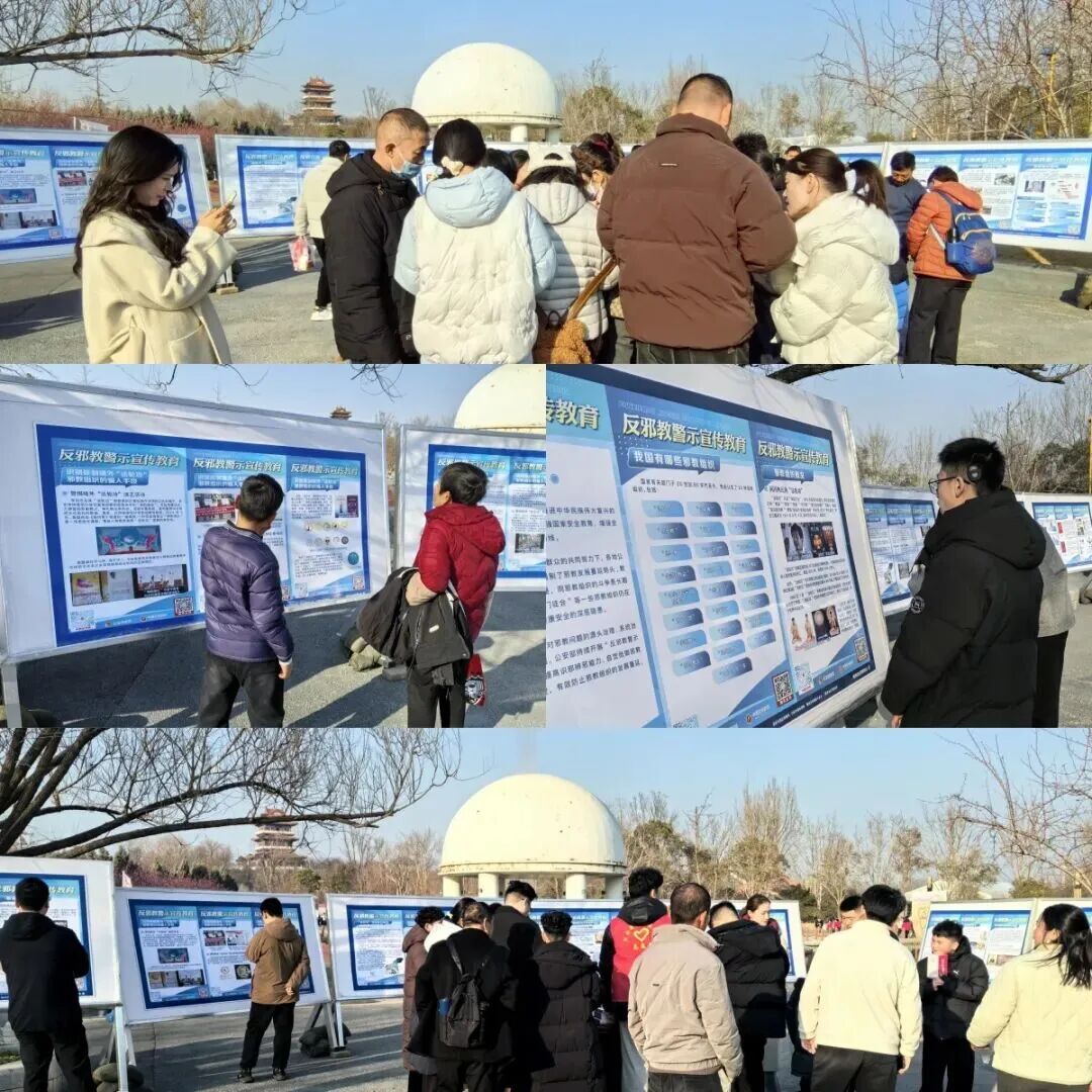 活动现场还展出了反邪教警示宣传教育展板8块共24幅挂图,内容由公安部四局和中国反邪教网共同编印。河南省反邪教协会还在园博园售票处广场设立了服务点,现场宣讲反邪知识、推广关注“豫风反邪”微信公众号、帮助游客参与线上有奖答题、现场兑换郑州园博园春节期间门票。