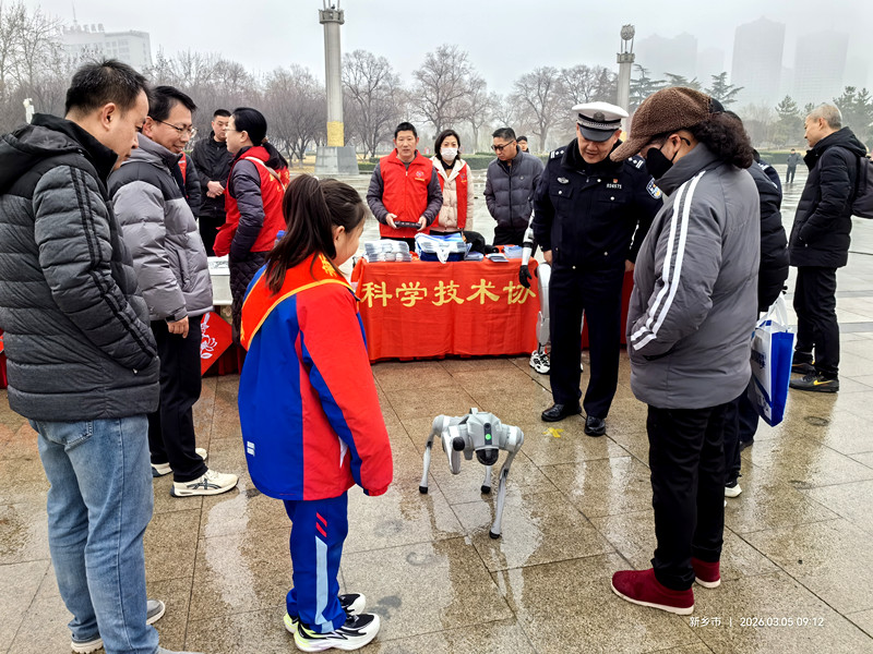 3月5日,在第63个“学雷锋纪念日”当天,“牧野新风·学雷锋我行动”2026年新乡市新时代文明实践推动月启动仪式在牧野广场举行。新乡市科协组织科技志愿者积极参与,传承雷锋精神。
