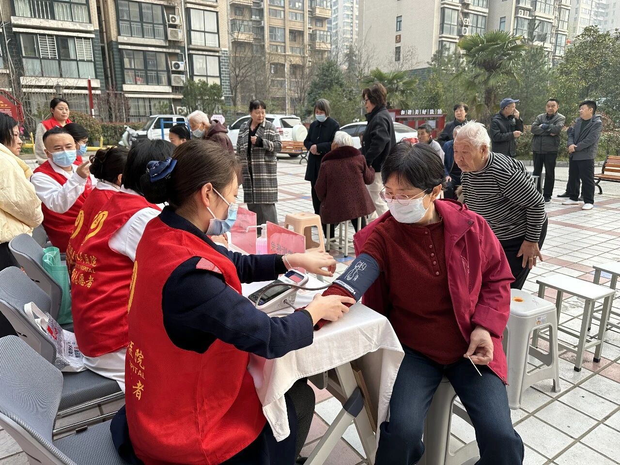 活动现场,巩义市人民医院主治医师、医护志愿者、健康科普专员,为居民提供免费测量血压、血糖、慢性病咨询、心电图、用药指导、中医养生等一站式便民服务。医务人员耐心细致地为居民问诊查体,详细询问生活习惯与病史,针对高血压、糖尿病、骨关节病等常见问题给出科学调理建议,手把手讲解居家保健、合理膳食、科学运动等健康知识,引导居民树立“早预防、早发现、早治疗”的健康理念。