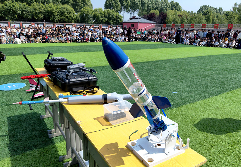 为深入实施全民科学素质提升行动,进一步丰富校园科技文化生活,激发青少年航空航天探索兴趣与科技创新热情,4月24日,由叶市科协、平顶山学院、叶县科协、叶县教体局联合开展的校园科技节科技科普进校园活动在叶县龚店镇初级中学进行。本次展演集科技展示、互动体验、科普教学于一体,让广大师生近距离感受航空航天科技魅力,切实提升青少年科学素养与实践能力。