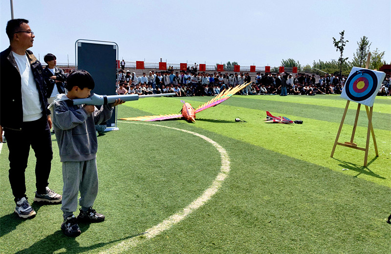 造型精美的飞天凤凰航模震撼升空,在操控人员专业指挥下平稳飞行、优雅盘旋,宛若神鸟翱翔天际,兼具科技感与观赏性,为整场展演增添别样风采,让青少年感受传统美学与现代科技的碰撞融合。