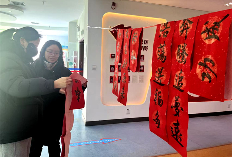 居民们闻讯而来,络绎不绝,活动现场热闹非凡。大家围在书写桌旁,或静心等候,或挑选心仪的春联内容,不时与志愿者交流互动,脸上洋溢着幸福的笑容。“手写的春联就是有温度,比买的更有年味,还能根据自己的喜好选内容,太贴心了!”刚领到春联的王阿姨爱不释手,连连称赞。
