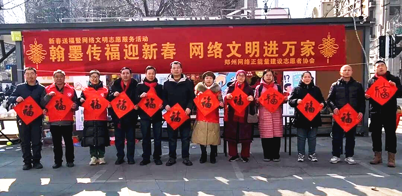 近日,由郑州网络正能量建设志愿者协会举办的“翰墨传福迎新春 网络文明进万家”新春送福暨网络文明志愿服务活动在农科路科明路户外工作者服务站旁温情启幕。志愿者以笔墨为媒、以文明为核,将中华优秀传统文化与网络文明理念有机融合,让年味与文明味相得益彰。