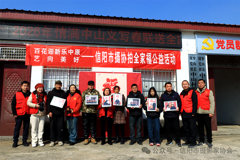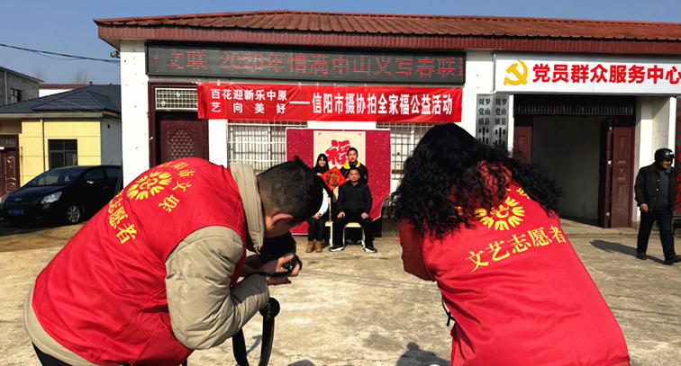 春节期间,信阳市摄影家协会围绕“百花迎新乐中原·艺向美好”主题,先后于2月8日、2月11日深入罗山县周党镇中山村和羊山新区新时代文明实践中心,开展“义拍全家福”公益活动,并同步举办主题摄影展,用镜头为基层群众送上一份充满年味的新春祝福。