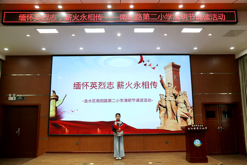 为弘扬爱国主义精神,传承红色基因,厚植少先队员爱国情怀,4月2日,郑州市金水区南阳路第二小学开展主题为“缅怀英烈志,薪火永相传”的清明节诵读活动,将中华优秀传统文化、革命文化与思政教育深度融合,为学生带来一堂浸润心灵的“清明思政大课”。