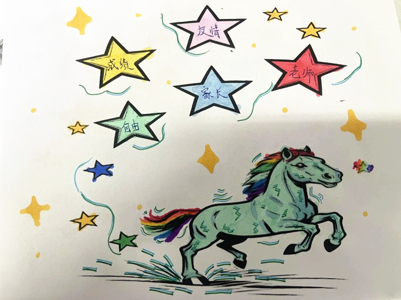 活动最后,几位同学大方分享自己的“力量星空”,真诚动人。老师寄语:每个人都有努力向前的小马,都有闪闪发光的星星,不必羡慕别人,你本身就很有力量,愿你们带着星光勇敢出发!