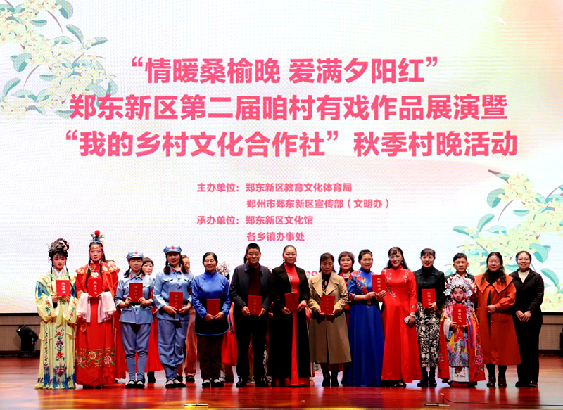 锣鼓铿锵,戏韵悠扬。2025年10月29日下午,由郑东新区教育文化体育局、郑东新区宣传部(文明办)主办,郑东新区文化馆、各乡(镇)办事处承办的“情暖桑榆晚 爱满夕阳红”郑东新区第二届“咱村有戏”作品展演暨“我的乡村文化合作社”秋季村晚活动在郑东新区文化馆举行。活动为全区戏曲爱好者搭建了展示风采的舞台,在重阳佳节之际,以传统文化盛宴传递尊老敬老深情,展现了郑东新区群众昂扬奋进的新时代精神风貌。